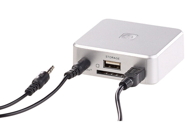 - Connectique audio : cinch audio stéréo, entrée Line-In et sortie Line-Out (chacune avec prise jack 3,5 mm)