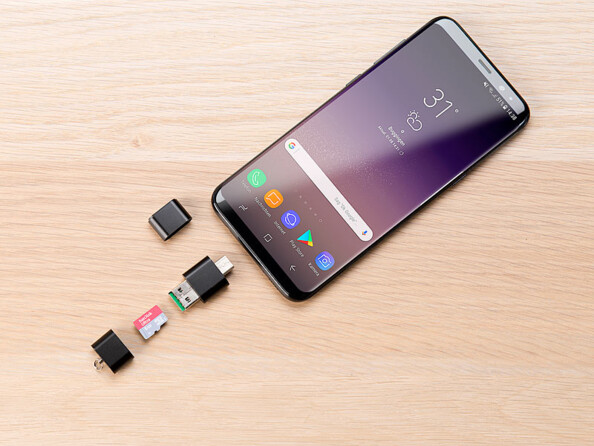 - USB type C pour la lecture sur smartphones et tablettes (par exemple Samsung Galaxy S8) ou Notebook avec USB C (MacBook...)