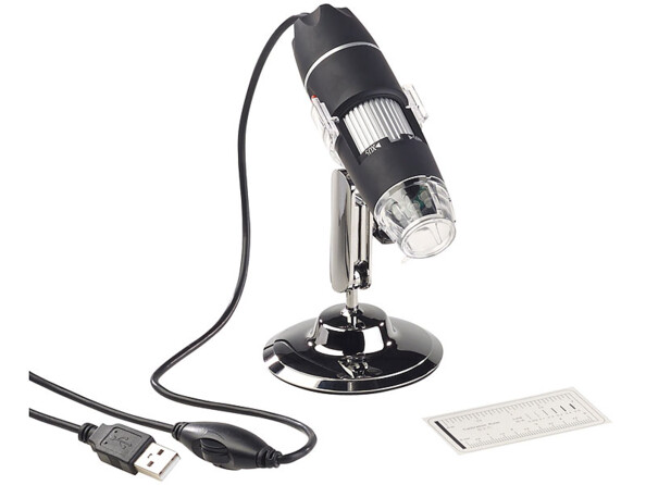 Branchez simplement le microscope à votre ordinateur par USB. Le logiciel fourni vous permet d'afficher les images, mais aussi de les enregistrer sous forme d'images fixes ou de vidéos. Pratique : mesurez les différents objets observés grâce à la règle graduée. Et pour une utilisation flexible : portez le microscope à la main ou fixez-le sur son support.