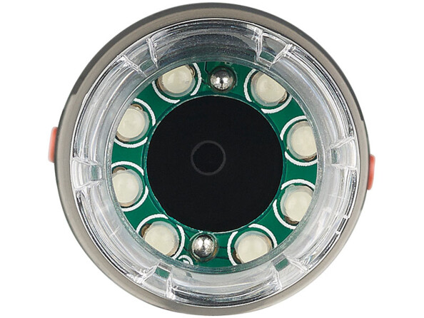 - 8 LED à intensité variable pour éclairage ; luminosité réglable en continu par bouton régulateur sur le câble