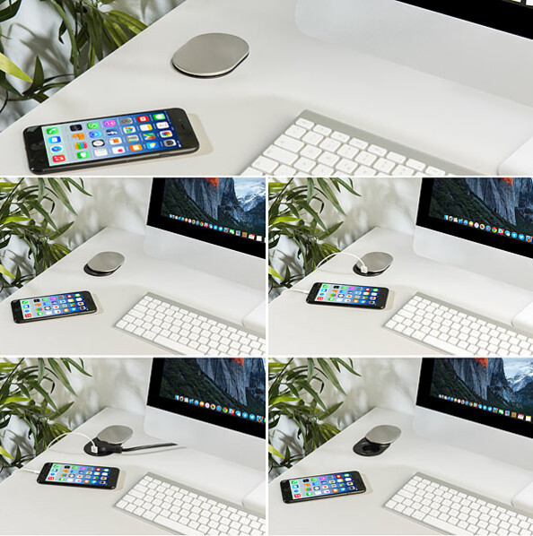 Glissez la prise dans votre bureau ou votre table pour bénéficier d'une source d'alimentation à la fois discrète et peu encombrante.