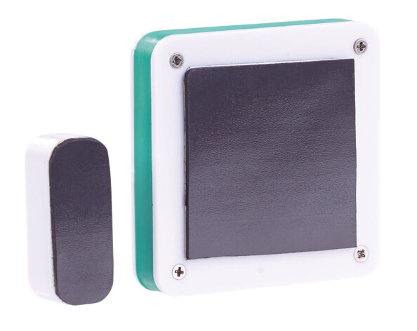 - Dimensions dispositif d'alarme : 50 x 50 x 11 mm, contact pour porte : 13 x 32 x 11 mm