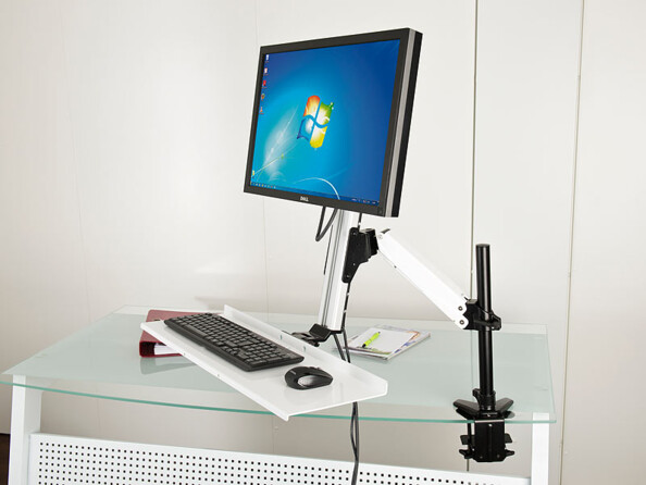 L'atout de cette station de travail : le bras articulé utilise des ressorts pneumatiques qui permettent de le déplacer sans effort. Quelle que soit la charge placée sur bras articulé, vous pouvez le faire pivoter facilement. Vous ajustez ainsi toujours parfaitement la position de l'écran et du clavier.