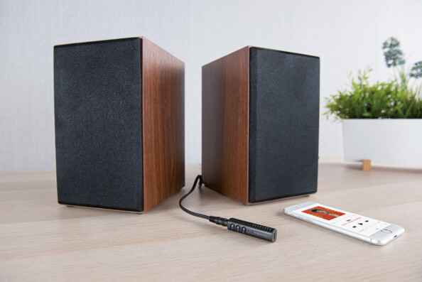 - Sortie audio (prise jack 3,5 mm) pour le branchement à une chaîne hi-fi, à un système de sonorisation de voiture, à un haut-parleur actif ou à un casque audio