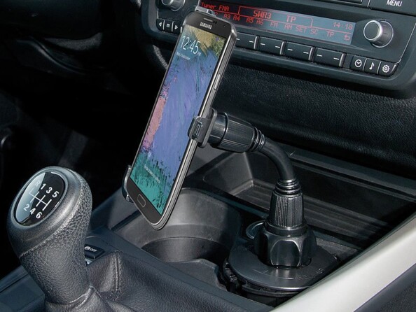 Le support est plus facilement accessible, ne gêne pas votre vue et s'installe en un tour de main ! Fixez-le dans le porte-gobelet de votre véhicule, et profitez des services de votre Samsung Galaxy Note 4 dans les meilleures conditions (adaptateurs en option).