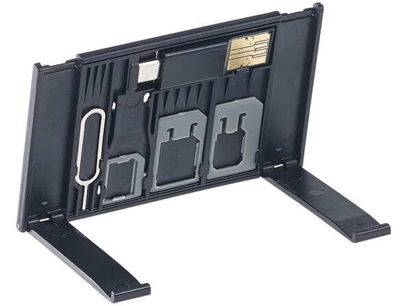 Ce porte-cartes offre 4 emplacements pour vos cartes SIM de différents formats : standard, Micro-SIM et 1 Nano-SIM. Toutes vos cartes sont ainsi bien rangées et à portée de main. C'est indispensable pour tous ceux qui doivent régulièrement changer de carte SIM : pour téléphoner à l'étranger ou pour utiliser un autre numéro par exemple.