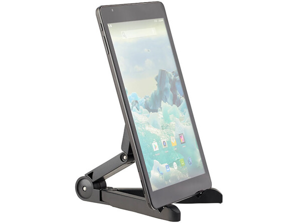 - Support pliable à poser, pour tablette, liseuse ou smartphone de 5,5" à 10,4" (de 14 à 26 cm)