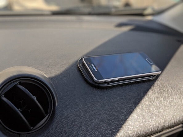 Placez ce tapis sur votre tableau de bord et vous pourrez y poser votre téléphone vos lunettes ou un briquet sans qu’il ne glisse au premier virage.