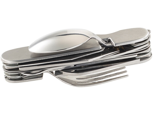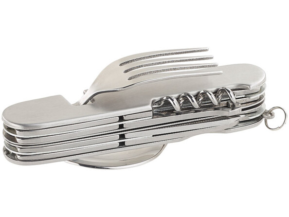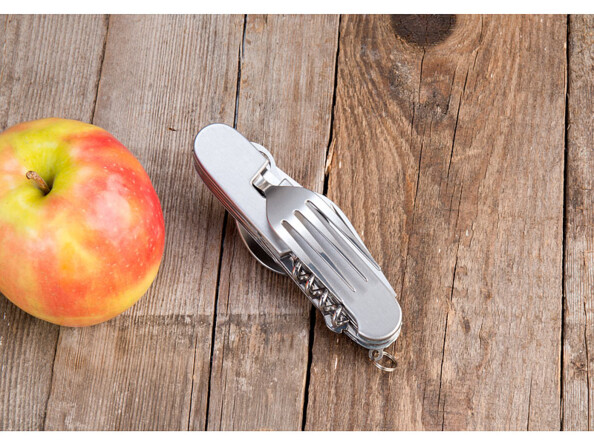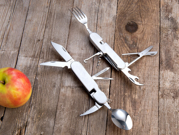 Cet ustensile pliable multifonction est à la fois une paire de couverts, une trousse à outils, un limonadier et un kit de manucure. Pour un trek ou pour un déjeuner sur le pouce, c'est parfait ! Car avec un encombrement minimum, vous emportez avec vous tout ce dont vous avez besoin pour déguster un bon repas. L'ustensile peut même être scindé en deux pour utiliser un couvert dans chaque main. Cuillère, fourchette et même couteau à steak, rien ne manque.