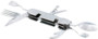 L’objet est séparable pour pouvoir utiliser le couteau et la fourchette en même temps. Il dispose en plus de deux cuillères, d’un tire-bouchon, d’un ouvre-canettes et d’un ouvre-boîte, ainsi que d’un pic et d’une spatule.
