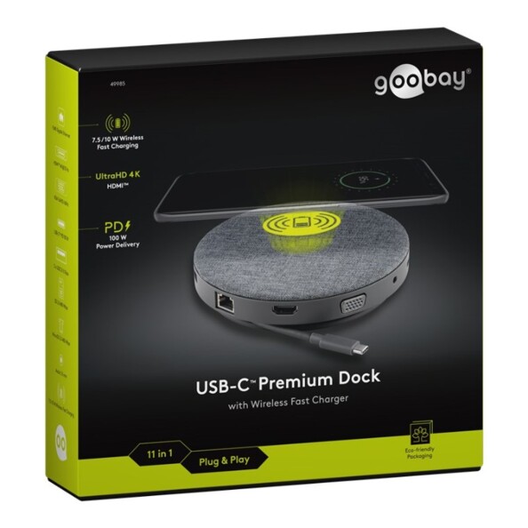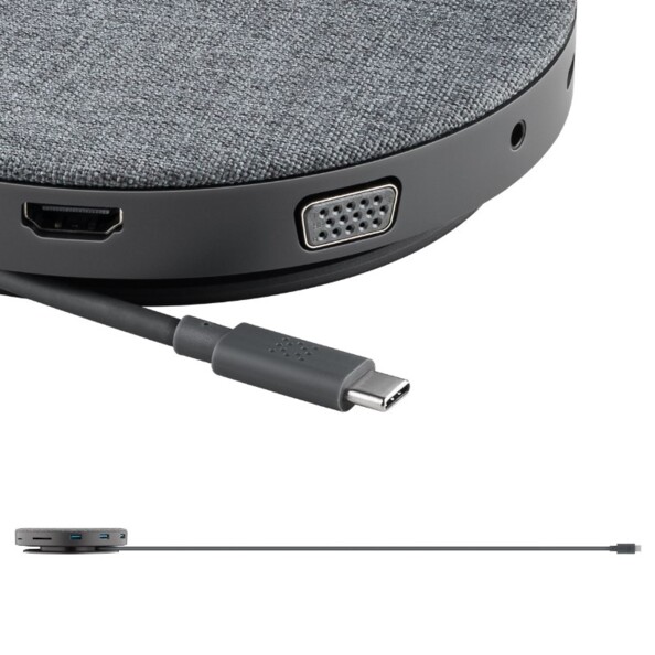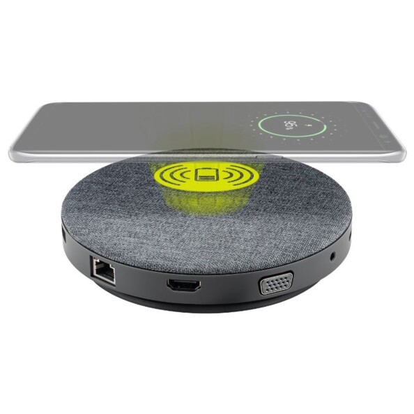 Un chargeur à induction de 10 W est dissimulé sous la décoration en tissu gris, permettant de recharger vos appareils mobiles compatibles Qi. Le système de chargement par induction est soutenu par un ventilateur qui s'allume et s'éteint automatiquement. En outre, le port USB-C Power Delivery permet de charger votre smartphone ou votre tablette jusqu'à 100 W. Grâce à cet accessoire, vous pouvez ainsi connecter jusqu'à 6 périphériques supplémentaires sur votre ordinateur portable : moniteur, clavier, souris, clé USB, câble réseau, carte mémoire, etc.