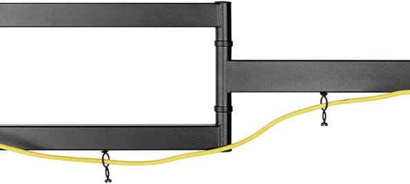 Par ailleurs, la structure en acier noir thermolaqué présente un design optimisé, qui s'effacera derrière votre TV pour un aspect peu encombrant. Enfin, le système intégré de gestion des câbles permet de garder les câbles de connexion rangés et protégés.