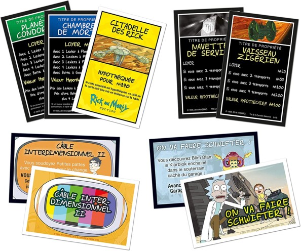 - Billets, cartes, hôtels et plateau inspirés de la série Rick et Morty