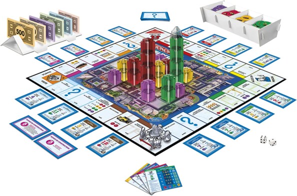 Achetez des propriétés puis réunissez et échangez des ressources de construction. Avec des camions-bennes, des grues, des excavatrices et des bateaux vous allez pouvoir construire à l’aide de blocs de construction l’île Monopoly sur vos parcelles. Vous avec un objectif, réalisez un Penthouse avant les autres.
