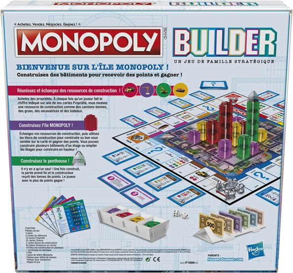 - Avec Monopoly Builder , achetez, vendez, négociez et gagnez la partie