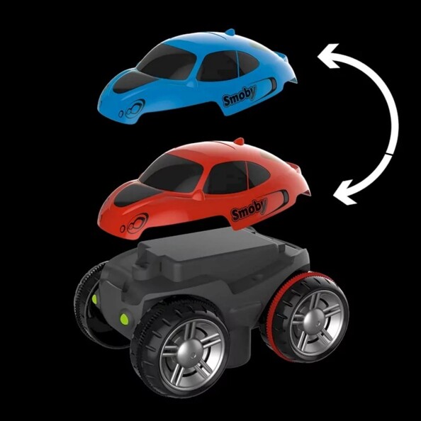 - Composé de 184 éléments de pistes flexibles pour réaliser un circuit de 4m40, un véhicule avec deux carrosseries interchangeables et une piste d'entrée/sortie.
