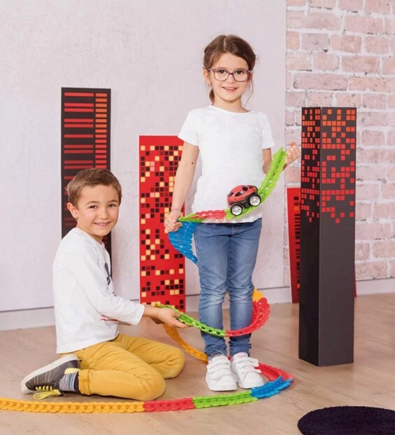 Ce jouet incroyablement innovant réunit des pistes flexibles et des véhicules pour créer un circuit passionnant qui peut être personnalisé selon les goûts de votre enfant. Avec des possibilités de créativité infinies, votre enfant peut construire et déconstruire sa piste autant de fois qu'il le souhaite, en explorant de nouveaux designs et itinéraires à chaque fois qu'il joue.