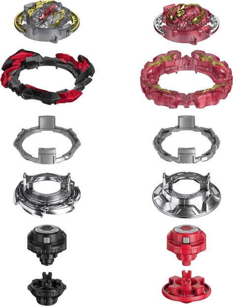 La singularité des toupies QuadDrive réside dans leur capacité à s'assembler de quatre façons distinctes. Pour les bladers, cela se traduit par quatre stratégies différentes, quatre configurations personnalisables, quatre modes de combat palpitants et, enfin, quatre chances distinctes de proclamer la victoire.