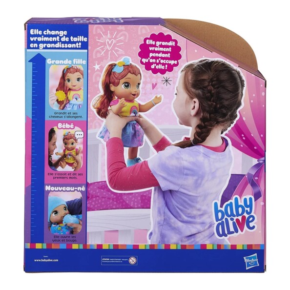 Cette poupée exceptionnelle vous offre une expérience 3 en 1 unique : elle se transforme de nouveau-né en bébé, puis en grande fille, grandissant jusqu'à 10 centimètres tout en émettant plus de 75 sons et phrases. Les enfants peuvent également réinitialiser la poupée "Baby Grows Up" pour revivre cette aventure encore et encore.