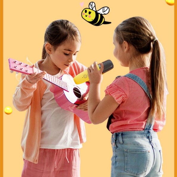 La batterie lithium-ion intégrée dans le micro et dans le haut-parleur au look d'abeille est rechargeable par USB pour que vous puissiez emporter le kit karaoké partout où vous allez. Elle vous procure de longues heures d’amusement avec un seul chargement. De plus, le format compact du pack ne prend que très peu de place. Et pourtant, il fournit un son puissant !