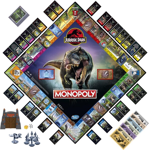 Jouez au Monopoly Jurassic Park, une aventure palpitante qui vous plonge au cœur de l'univers des dinosaures.