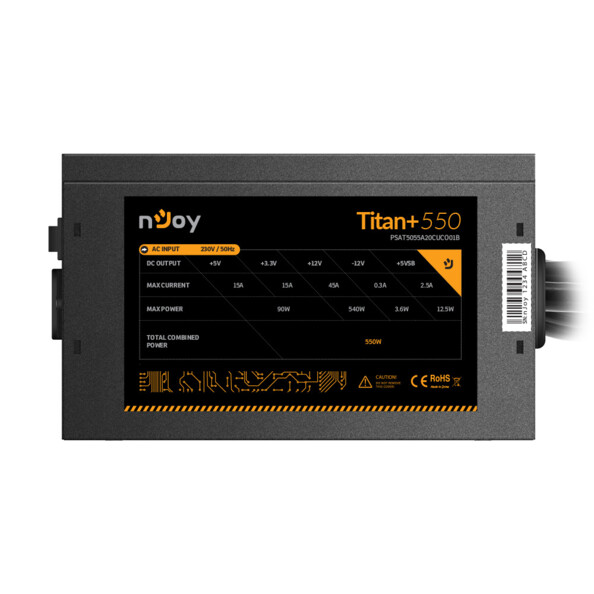 Le bloc d'alimentation Titan+ 550 de la marque nJoy permet d'améliorer les performances de votre PC et de faire des économies d'énergie ! La certification européenne 80+ Bronze garantit un meilleur rendement, c'est-à-dire un très bon rapport entre la puissance consommée et la puissance fournie. Le PSU Titan+ 550 W ajuste automatiquement la tension d'entrée AC, ce qui permet d'économiser une grande quantité d'énergie sur le long terme. Le système offre une plus grande résistance aux changements de tension soudains, grâce à son PFC actif (correcteur du facteur de puissance).