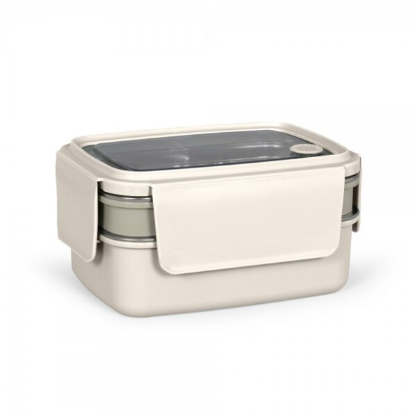 La lunch box isotherme MEN406C est fabriquée en majeure partie en plastique ABS et en acier inoxydable. Sa couleur beige sobre et élégante convient parfaitement à tous les styles.