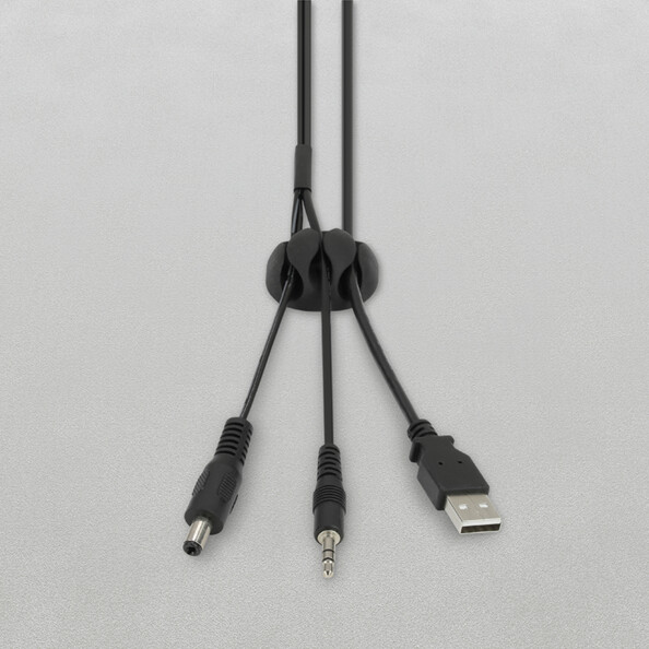 Dotés chacun d’une face adhésive à l’arrière, les supports peuvent être collés là où vous en avez le plus besoin, que ce soit sur un bureau, sur un meuble télé ou en voiture. Trois encoches pour rangement de câbles sont à votre disposition sur chaque support en caoutchouc. Vous pouvez donc mettre en ordre jusqu'à trois câbles par support.