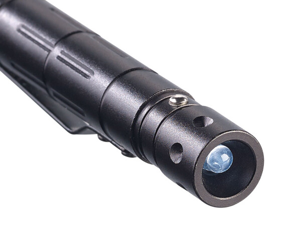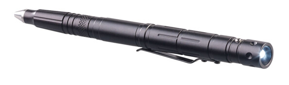 Stylo en aluminium avec lampe LED, coupe-papier, Kubotan et brise-vitre intégrés