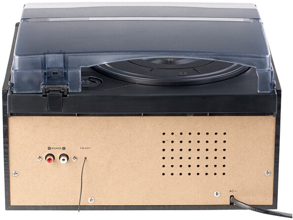 - Interfaces : 2 haut-parleurs (Cinch), USB, fente SD, entrée AUX et prise casque (jack 3,5 mm)