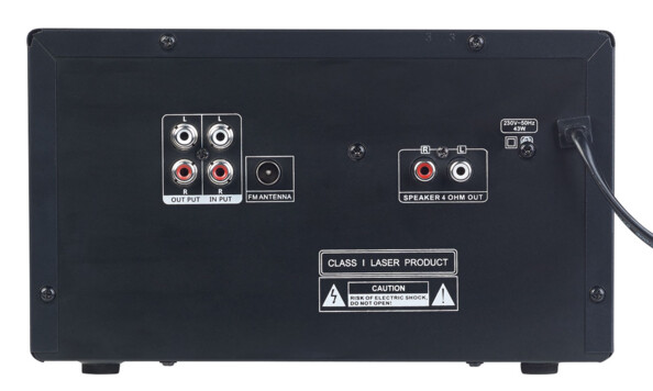 - Connectique : USB 2.0, prise antenne radio, entrée et sortie stéréo cinch, 2 prises haut-parleur