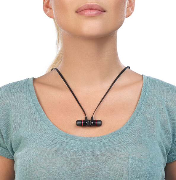 Et lorsque vous n'avez plus besoin de votre micro-casque, portez-le autour de votre cou comme un collier ! Il suffit de coller les deux oreillettes magnétiques l'une à l'autre.