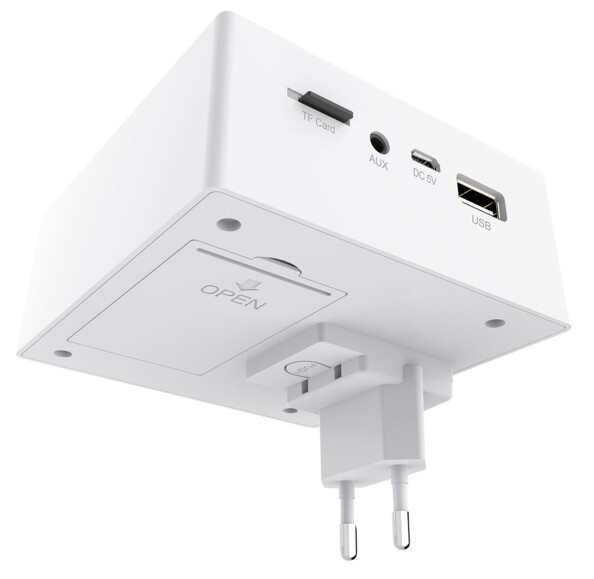 - Radio pour prise murale MPS-800.bt. Inclus : câble de chargement, câble Aux-In, et mode d’emploi en français