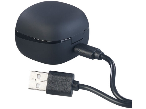 - Alimentation étui de chargement : batterie lithium-ion 550 mAh pour jusqu'à 3 chargements d'oreillettes, chargement USB (adaptateur secteur non fourni)