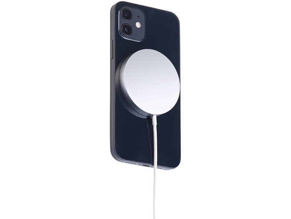 Compatible avec la technologie MagSafe, la station de chargement permet de recharger un iPhone 12.