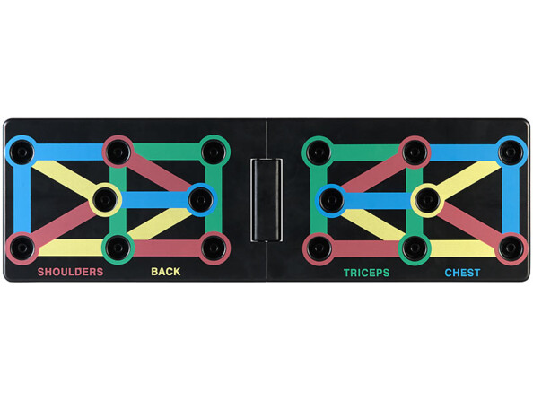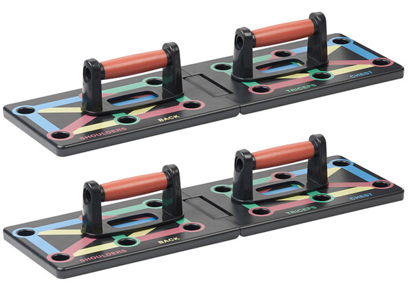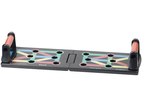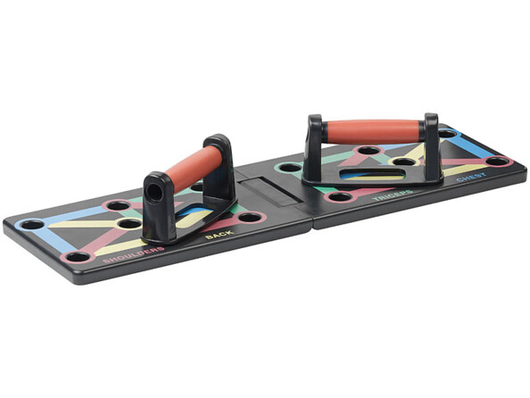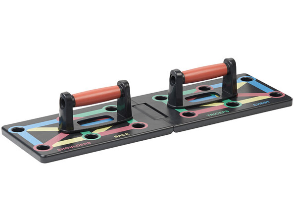 Avec ce support de musculation, ou "Push Up Board", choisissez la configuration selon les muscles que vous souhaitez travailler au poids du corps. Les poignées amovibles peuvent être placées selon 9 schémas différents pour travailler les pectoraux, les triceps, le dos et les épaules. Leur position est clairement indiquée grâce aux repères colorés sur la planche.