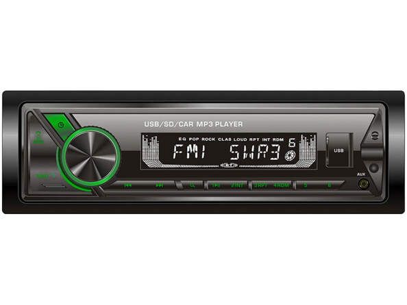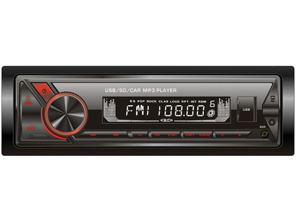 - Connectique en façade : fente pour carte SD, port USB, prise jack 3,5 mm (AUX In)