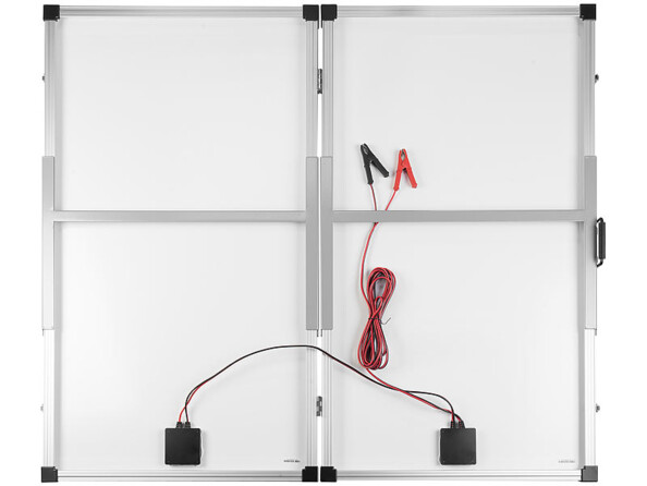 - Dimensions du panneau solaire déplié : 118 x 66,5 x 8 cm, poids : 19 kg