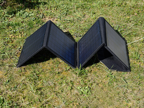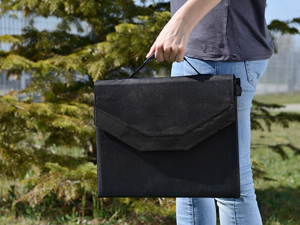 - Dimensions du panneau solaire plié (L x l x h) : 29 x 2,5 x 35,5 cm, poids : 2,5 kg