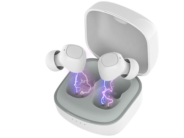 - Extinction automatique des oreillettes lorsqu'elles sont placées dans le boîtier, appariement automatique lorsqu'elles sont sorties du boîtier