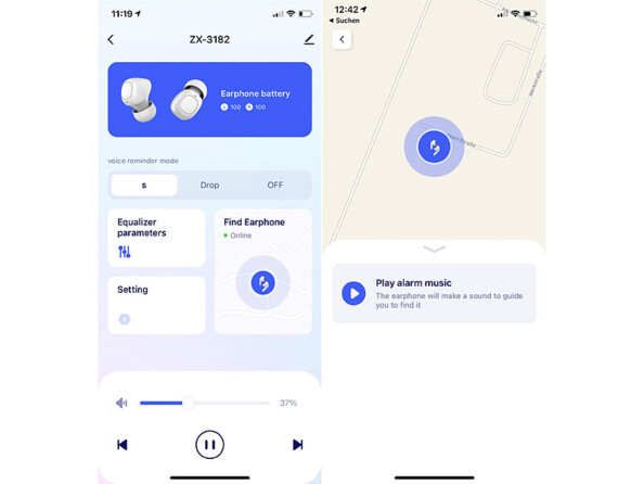 L'application gratuite ELESION vous offre la possibilité de bénéficier de fonctions intelligentes supplémentaires. Elle vous permet par exemple d'adapter votre musique à un volume vous convenant grâce à la fonction d'égalisation ou de retrouver vos oreillettes lorsque vous les avez perdues.
