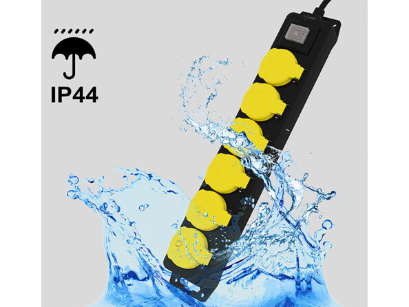 Cette multiprise est spécialement conçue pour être utilisée en extérieur et dans des conditions de travail difficiles. Son boîtier en plastique robuste résiste aux intempéries, ne rouille pas et ne conduit pas l'électricité. Même une forte averse ne peut pas endommager le bloc multiprise ! De plus, un cache rabattable à fermeture automatique et un joint en caoutchouc sur chaque prise rendent la multiprise étanche à la poussière et à l’humidité. Elle est donc parfaitement adaptée pour un chantier, un atelier de bricolage ou pour le prochain barbecue organisé dans le jardin.