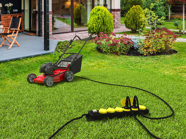 Équipée de 6 prises de courant, la multiprise Revolt peut alimenter jusqu’à six de vos appareils électriques d’extérieur simultanément (par ex. outil électrique, spot de chantier, barbecue électrique, guirlande lumineuse, etc.).