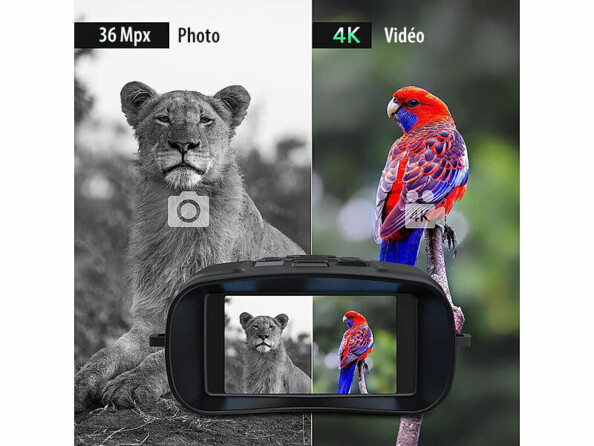 Devenez nyctalope avec ces jumelles de vision nocturne et caméra 4K 36 Mpx avec zoom 6x ! Même les chats vont vous envier. Le grand écran couleur (avec rétroéclairage réglable) affiche des images nettes et détaillées de votre environnement.