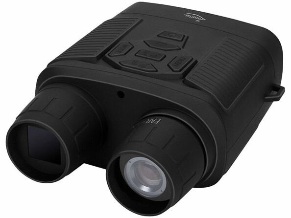 Soyez à la pointe de la technologie : contrairement aux appareils avec tube convertisseur, ce binoculaire est équipé d'un viseur électronique, et n'est donc pas sensible à la lumière du soleil ! Le jour, vous l'utilisez comme des jumelles classiques ; la nuit, il vous éclaire dans l'obscurité. Grâce à la sangle réglable, accrochez l'appareil de vision nocturne autour de votre cou pour ne pas encombrer vos mains.
