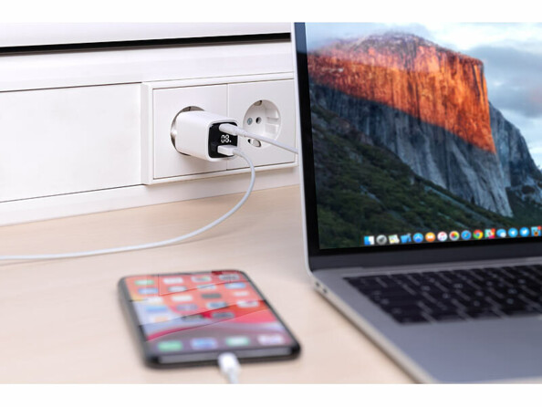 Le chargeur secteur USB-A / USB-C 33 W avec Quick Charge, Power Delivery et écran de la marque Revolt recharge jusqu'à deux appareils mobiles USB en même temps. Vous pouvez ainsi recharger votre smartphone, votre tablette ou votre appareil photo en un clin d'œil.