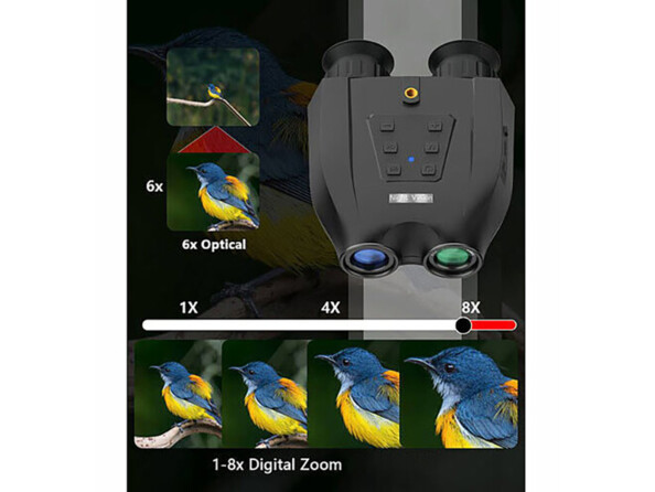 - Vision avec grossissement optique 6x, zoom numérique 8x