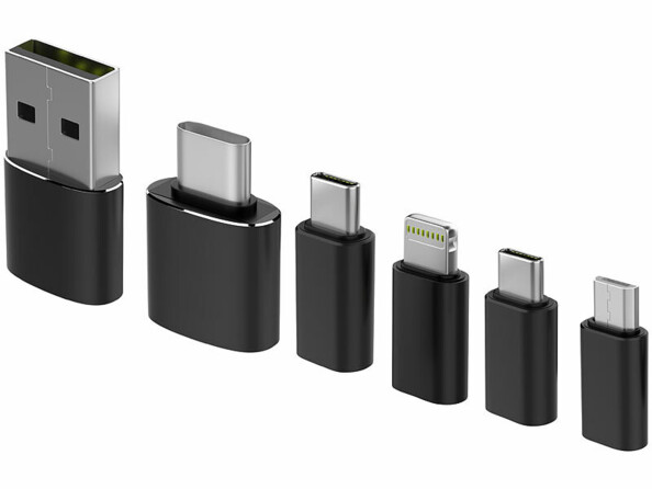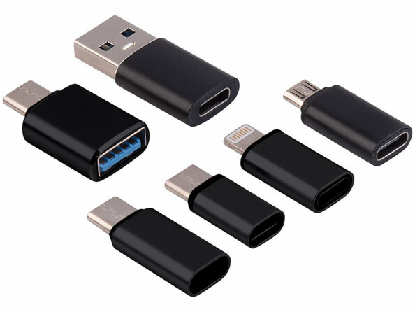 - Pack de 6 adaptateurs USB OTG vers USB-A / Micro-USB / USB-C / Lightning