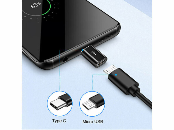 - 1 Micro-USB mâle vers USB-C femelle : 5 V à 2 A / 10 W, compatible OTG, chargement et transfert de données jusqu'à 5 Gb/s