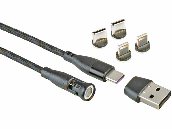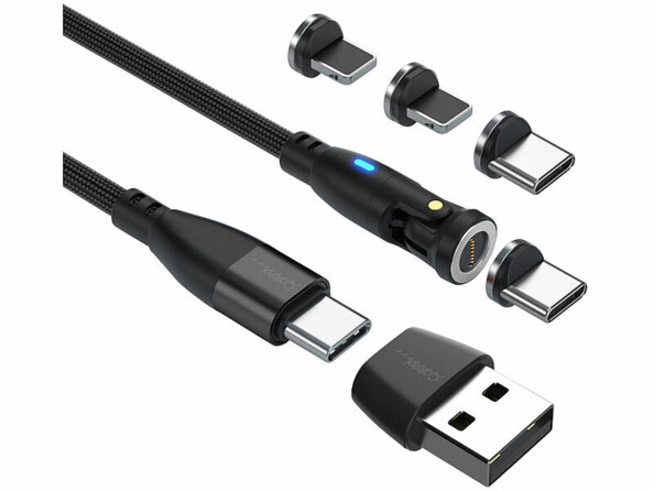 - 2 câbles magnétiques USB-C/Lightning vers USB-C/USB-A de la marque Callstel